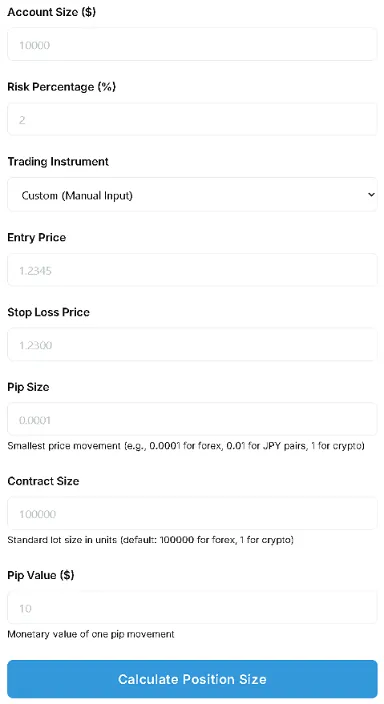 See? No matter how "unusual" your broker's contracts may be, as long as you find that crucial "Contract Size" figure, our calculator will provide you with precise position sizing recommendations. This "Custom" feature is your ultimate weapon for mastering all non-standard trading instruments!